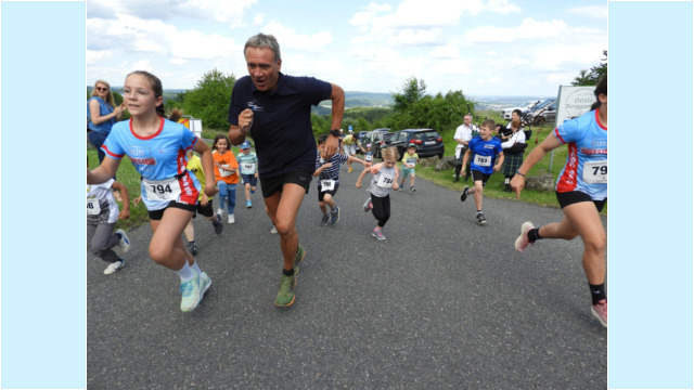 Auf dem hügeligen, dreimal zu durchlaufenden Kurs durch die Wälder und Außenbereiche oberhalb des Dorfes, ließ es Oliver Debus von der LG Dill wie sein Sohn Nico