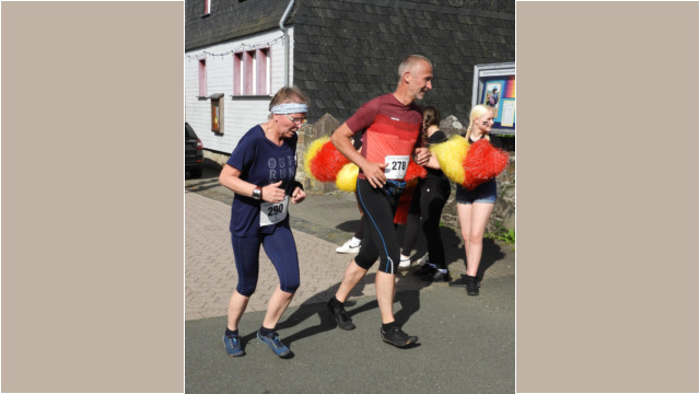 Meldet sich erfolgreich zurück, Oliver Debus (LG Dill)Sabine Hennemann (LG Dill) hat beim Halbmarathon die Konkurrenz im Griff.