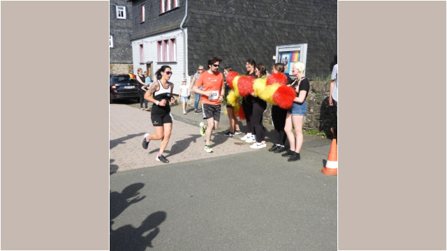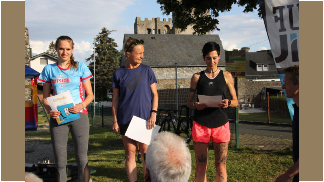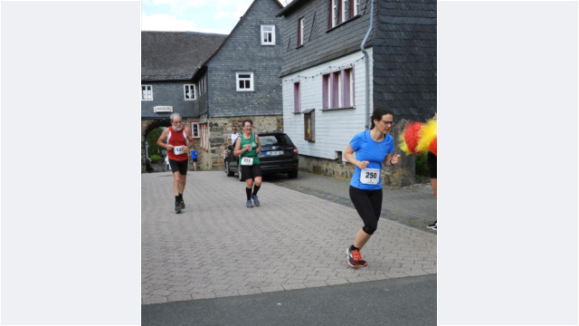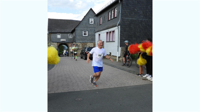 schafften sechs Männer und vier Frauen Top-Ten-Platzierungen. Die Gesamt-Bilanz weist zusätzlich beachtliche zehn Klassensiege und fünfzehn zweite Plätze aus. Auf der 5,3 Kilometer langen Strecke, die günstig zum Einlaufen, auf dem ersten Abschnitt von Katzenfurt nach Edingen flach ist, sind die 2,8 Kilometer hoch zur Burg mit kräftezehrenden 260 Höhenmetern gespickt. Diese Höhenmeter haben es nicht nur wegen der stetigen Steigung, sondern besonders bei einem Hitzelauf wie in diesem Jahr, bei vollkommener Abwesenheit von Schatten, in sich. Mit starken 21:19 Minuten führte das äthiopische Marathon-Ass Getu Feleke ( Marathon-Bestzeit 2:04:50 Stunden ) das Feld an. Die schnellste Frau auf der Burg war Dietlind Nieke vom LC Eschenburg in ausgezeichneten 26:55 Minuten. Auch MU20-Star Nico Debus vom Team Naunheim erreichte den Burghof in 23:49 Minuten und wurde damit mit dem Sieg in seiner Altersklasse belohnt.