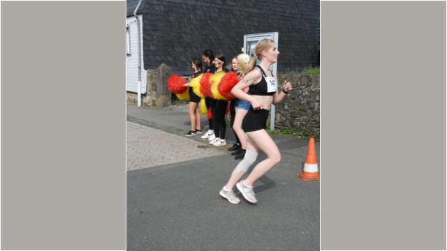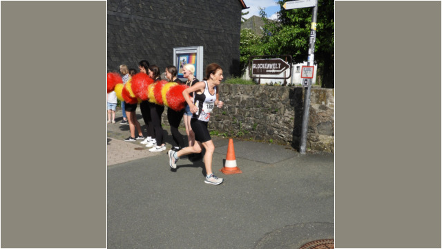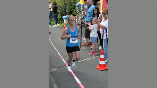 Wenige Meter vorm Ziel - Dietlind Nieke, die erste Läuferin im Ziel