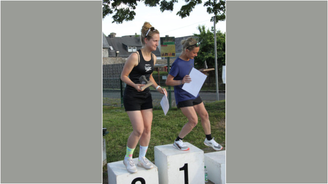 Vor dem Start, Sabine Hennemann (LG Dill) und Tina Feix (LG Asslar Werdorf)