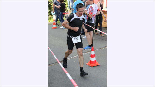 Steigerte sich noch mal auf den letzten Kilometern: Oliver Debus (LG Dill)nach längerer Verletzungspause locker angehen und zeigte sich nach einer Steigerung im Schlussteil mit den erreichten 1:30:21 Stunden und dem überlegenen Erfolg in der M50 hochzufrieden. Nico Debus (Team Naunheim) nutzte das Rennen lediglich zu Trainingszwecken.